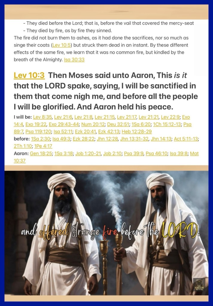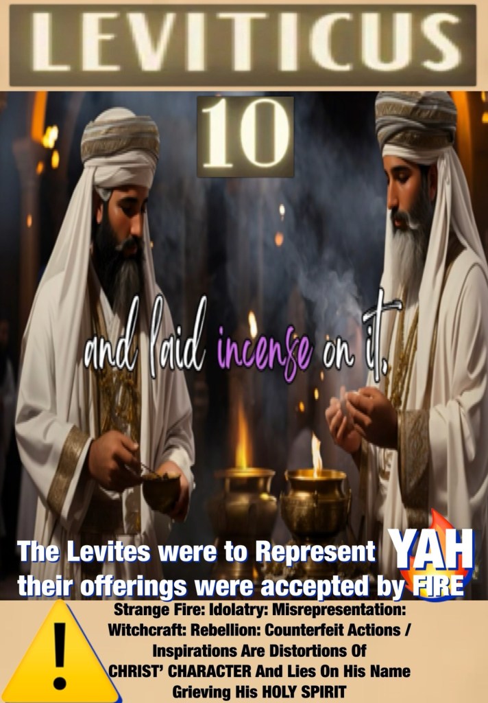 Greetings BeLoved And Set-Apart children of THE MOST HIGH GOD. Many of us are still unaware that there should be a Difference between the Holy (Set Apart for Holy use) and the Profane (common, that which Doesn’t Glorify GOD) just because something (one) is labeled “Christian” doesn’t mean it is… and that difference is deadly. ⚠️ FIRE And Strange Fire The Danger of False Worship. This message lesson is sent in LOVE, for the saving of your soul which is of Infinite Value to YHWH GOD CREATOR JESUS CHRIST FATHER… Know Him, Heed His WORD Please. Thank you for journeying through Scripture with me, I pray you be blessed and feel free to share our FATHER wants All of us, as many as would be saved in His Eternal Kingdom; Glorify CHRIST Today, The Levites were to Represent YAH their offerings were accepted by YAH’S HOLY FIRE Psalms 141:2 Let my prayer be set forth before thee as incense; and the lifting up of my hands as the evening sacrifice. HalleluYAH! Walk Good Always All Ways BeLoved.💝