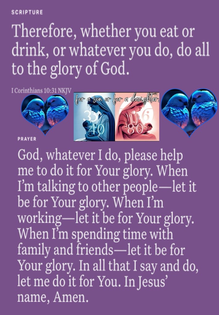 Today’s message Leviticus 12, today’s verses: “When He had called the people to Himself, with His disciples also, He said to them, “Whoever desires to come after Me, let him deny himself, and take up his cross, and follow Me. For whoever desires to save his life will lose it, but whoever loses his life for My sake and the gospel’s will save it.” Mark 8:34-35 “Therefore, whether you eat or drink, or whatever you do, do all to the glory of God.” I Corinthians 10:31