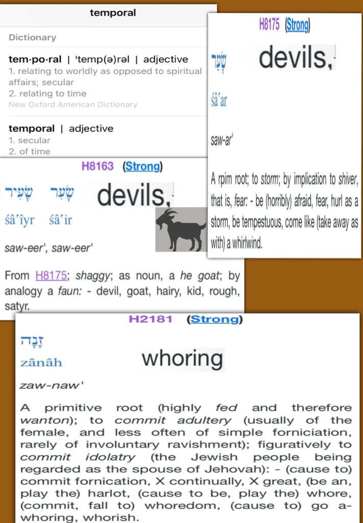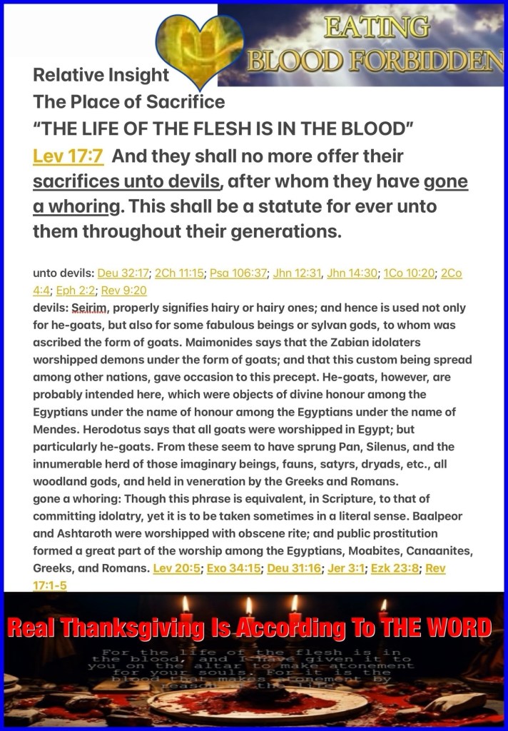 “They shall no more offer their sacrifices to demons, after whom they have played the harlot. This shall be a statute forever for them throughout their generations.” ’ Leviticus 17:7