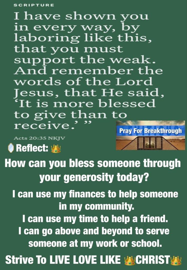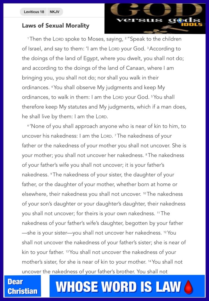 Today’s message Leviticus 18, today’s verses: “But as it is written: “Eye has not seen, nor ear heard, Nor have entered into the heart of man The things which God has prepared for those who love Him.”” I Corinthians 2:9 “I have shown you in every way, by laboring like this, that you must support the weak. And remember the words of the Lord Jesus, that He said, ‘It is more blessed to give than to receive.’ ”” Acts 20:35
