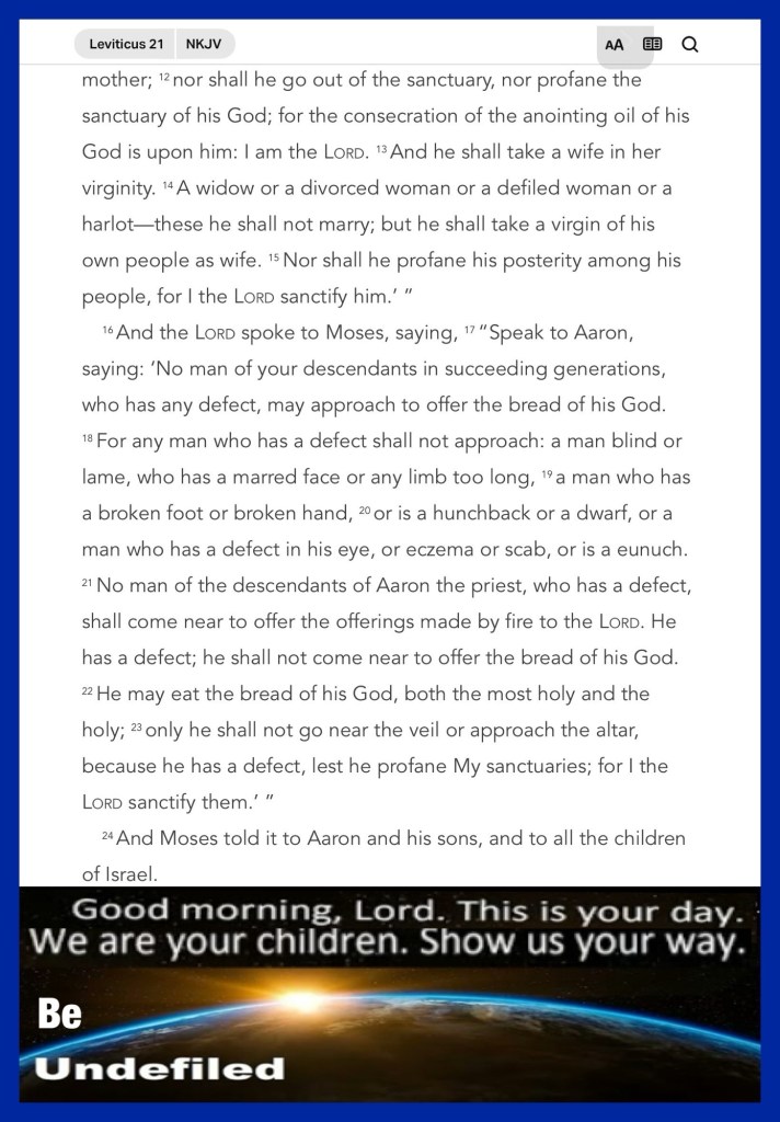 Today’s message Leviticus 21, today’s verses: “Therefore, whatever you want men to do to you, do also to them, for this is the Law and the Prophets.” Matthew 7:12 “in everything give thanks; for this is the will of God in Christ Jesus for you.” I Thessalonians 5:18