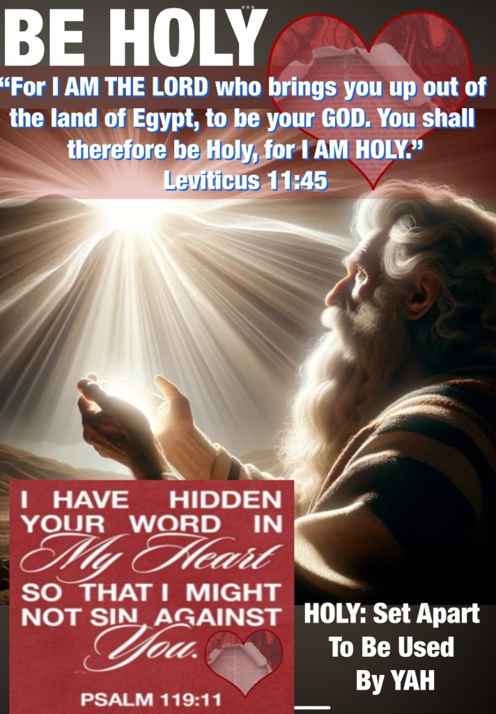 Greetings BeLoved happy new week may YAH bless and keep you and yours, the warfare is heavy but remember we represent our Heavenly FATHER, Who through His HOLY SPIRIT Will Separate you from the mess and bless you with a message of victory. Ezra 8:28 And I said unto them, Ye are holy unto the LORD; the vessels are holy also; and the silver and the gold are a freewill offering unto the LORD God of your fathers. 1 Peter 2:9 But ye are a chosen generation, a royal priesthood, an holy nation, a peculiar people; that ye should shew forth the praises of him who hath called you out of darkness into his marvellous light: LIVE UNDEFILED HALLELUYAH!