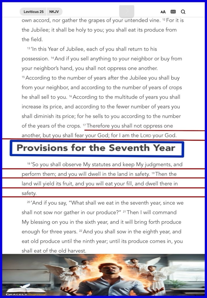 “Therefore you shall not oppress one another, but you shall fear your God; for I am the Lord your God. ‘So you shall observe My statutes and keep My judgments, and perform them; and you will dwell in the land in safety. Then the land will yield its fruit, and you will eat your fill, and dwell there in safety.” Leviticus 25:17-19
