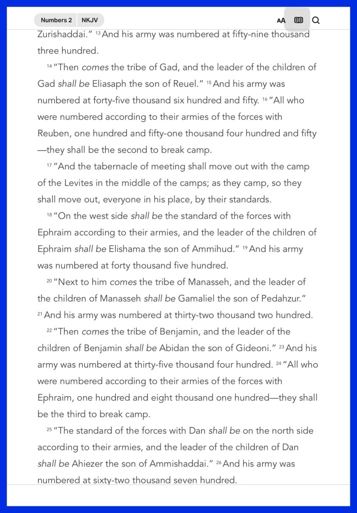 Today’s message Numbers 2, today’s verses: “in the first year of his reign I, Daniel, understood by the books the number of the years specified by the word of the Lord through Jeremiah the prophet, that He would accomplish seventy years in the desolations of Jerusalem.” Daniel 9:2 “The Lord your God in your midst, The Mighty One, will save; He will rejoice over you with gladness, He will quiet you with His love, He will rejoice over you with singing.”” Zephaniah 3:17