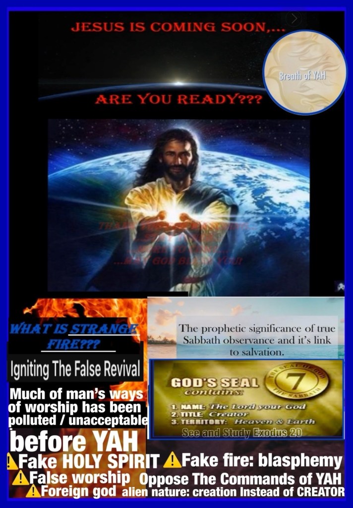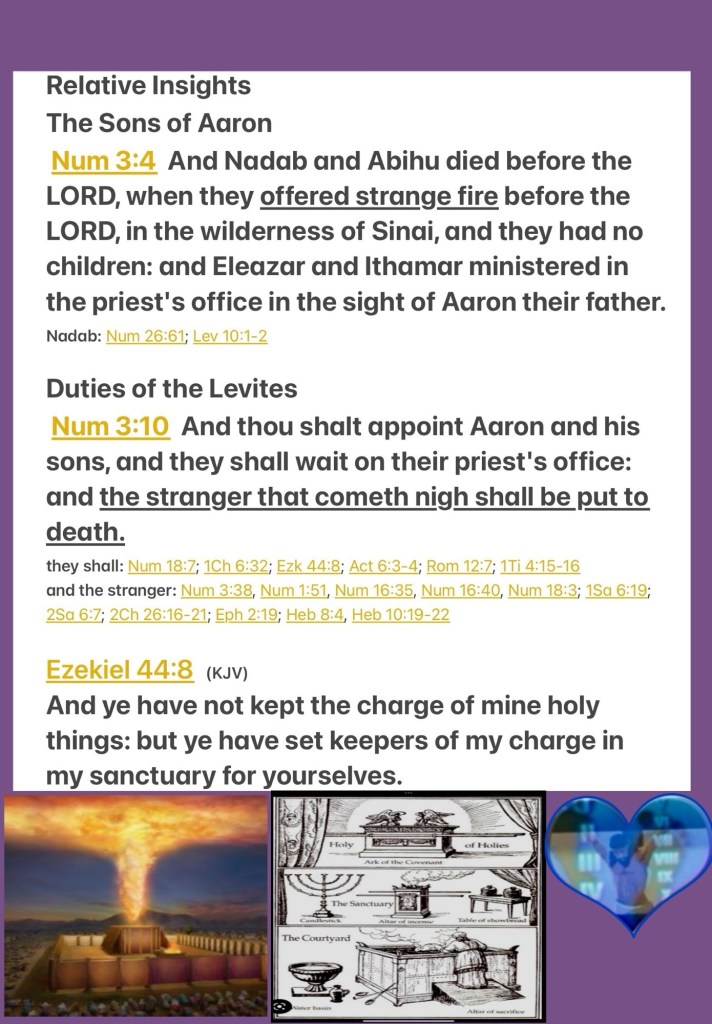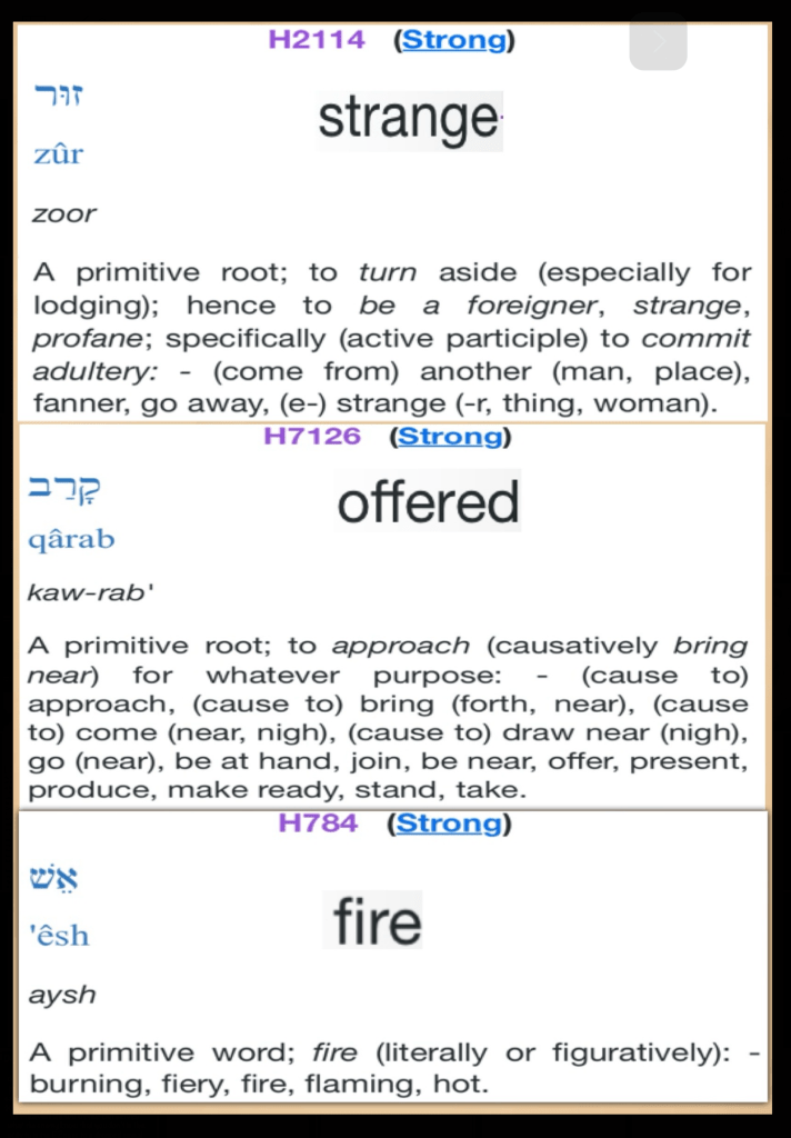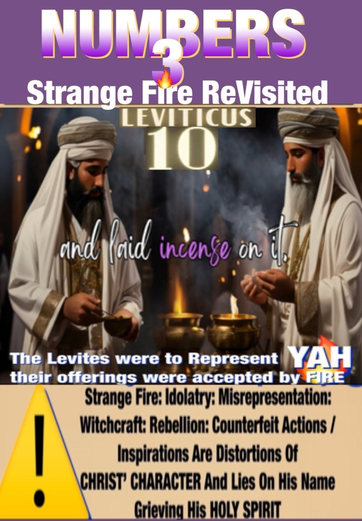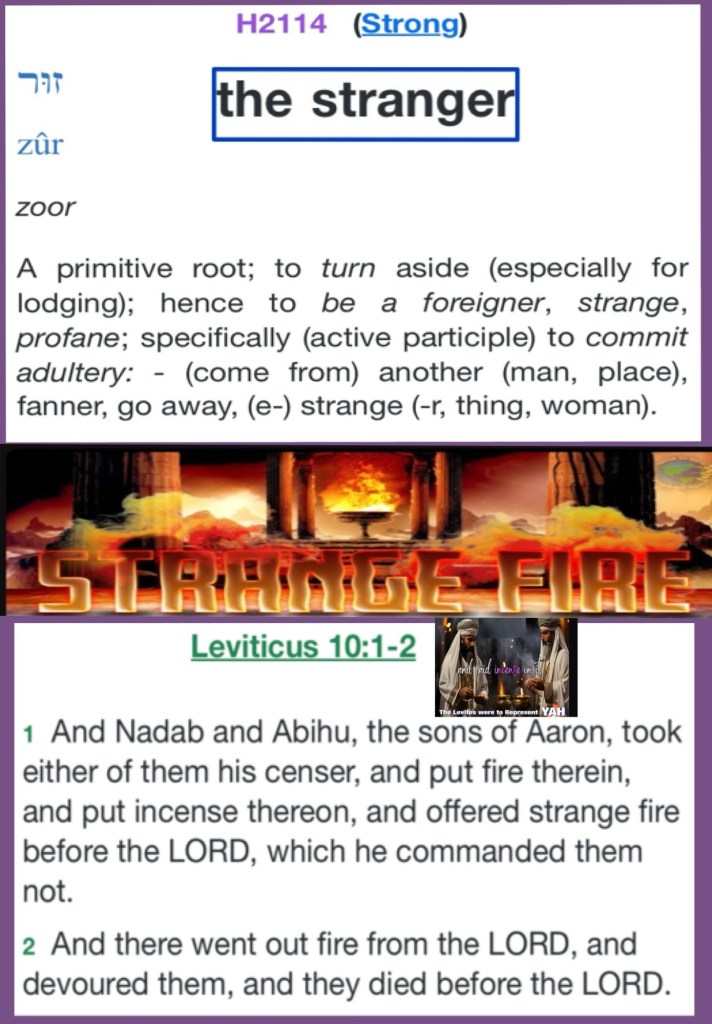 Greetings BeLoved child of GOD; we have a MIGHTY LOVING HOLY GOD but Never get it twisted or take that lightly It Is A Serious Thing To Be In Relation (proximity) and Relationship With our HOLY (SET APART DEDICATED) GOD This Includes how we Handle THE WORD OF YAH; we need not be “strange or estranged” from THE FATHER in fact we are welcome to come and so we are encouraged to Pray Ask for Wisdom, Discernment and Discipline so that we know YAH’S Will and Not offer “strange or profane fire” before GOD (It’s Idolatry and punishable by death). YAH Is Not interested in any other “deities” worship; it is offensive, disrespectful… YAH Is our CREATOR GOD OMNIPOTENT OMNIPRESENT OMNISCIENT He Knows us even while many choose Not to know Him: His WORD: LAW and so I thank you, your presence here tells me (and all of Heaven) that you are interested in journeying through The Scriptures to better know THE WORD HalleluYAH! Be blessed BeLoved, Walk Good and Beware Stranger, YAH Knows Your Number And He Will Put Out Your Strange Fire With His Own ⚠️ Repent Be Healed. 1 Timothy 4:15-16 Meditate upon these things; give thyself wholly to them; that thy profiting may appear to all. Take heed unto thyself, and unto the doctrine; continue in them: for in doing this thou shalt both save thyself, and them that hear thee.