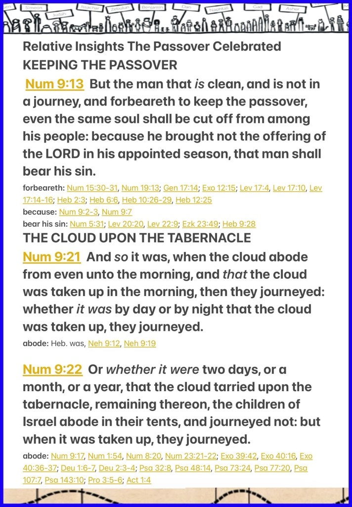 Greetings BeLoved Happy work week, as we traverse through The Scriptures and our forefathers wilderness experience, and look for applications in our current life experiences what stands out to me is to Trust in CHRIST’S Timing, Where In lies our only hope yes it may seem as though it was super obvious “So it was, when the cloud remained only from evening until morning: when the cloud was taken up in the morning, then they would journey; whether by day or by night, whenever the cloud was taken up, they would journey. Whether it was two days, a month, or a year that the cloud remained above the tabernacle, the children of Israel would remain encamped and not journey; but when it was taken up, they would journey.” Numbers 9:21-22 but isn’t it equally obvious in a post JESUS CHRIST came here world where we have free access to THE WORD and the Lessons showcased within It. Could we be so close to the Appointed Time but rather than keep the (Preparation or ) Passover we run the risk of being Cut Off? GOD Forbid