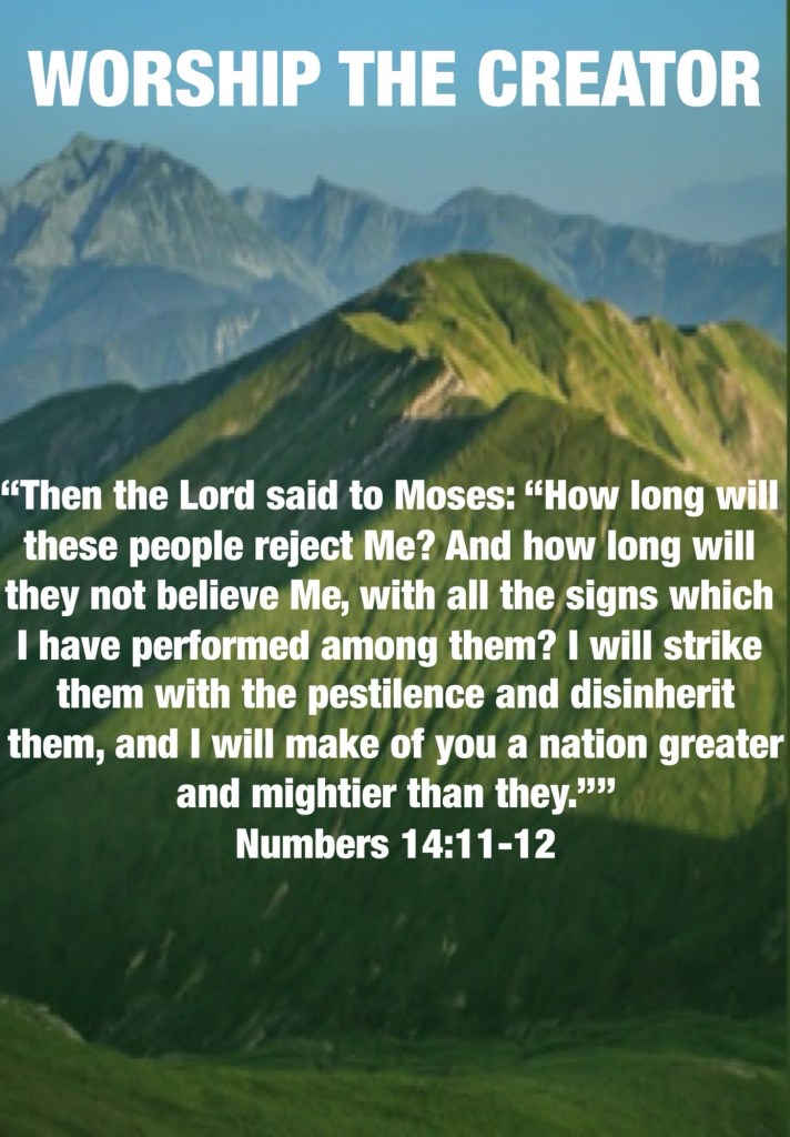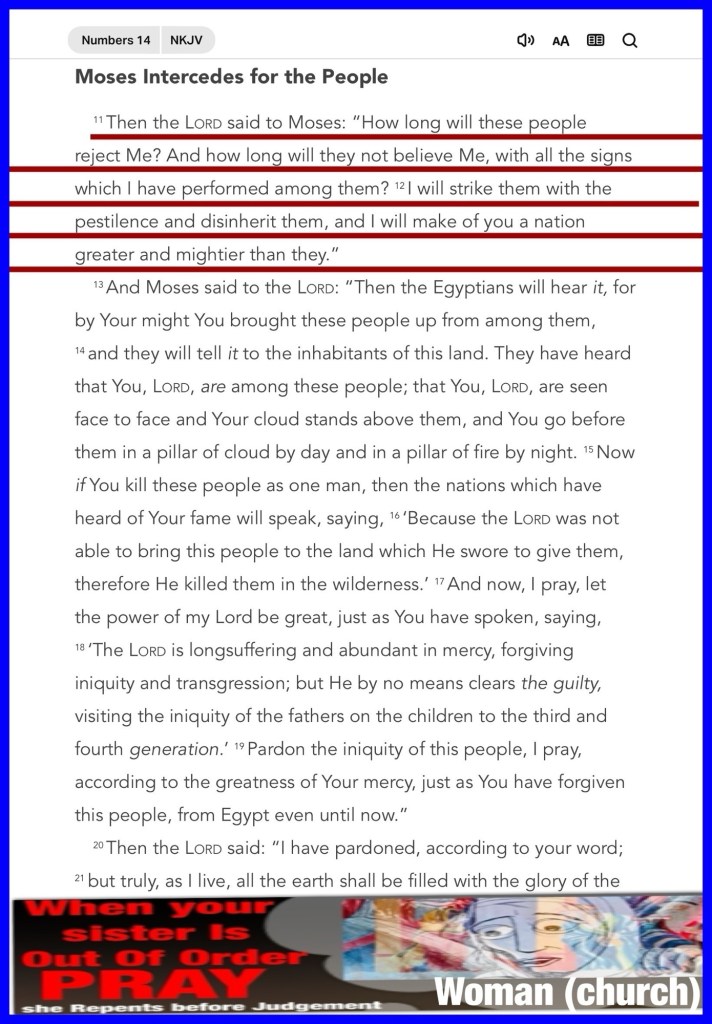“Then the Lord said to Moses: “How long will these people reject Me? And how long will they not believe Me, with all the signs which I have performed among them? I will strike them with the pestilence and disinherit them, and I will make of you a nation greater and mightier than they.”” Numbers 14:11-12