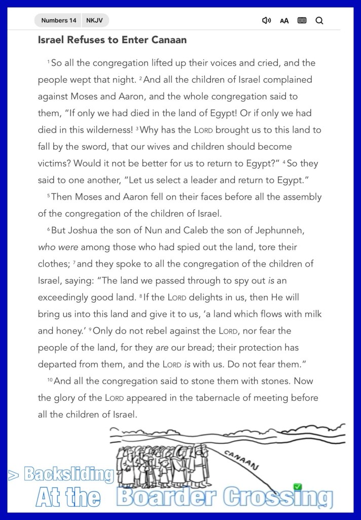 Today’s message Numbers 14, today’s verses: “not by works of righteousness which we have done, but according to His mercy He saved us, through the washing of regeneration and renewing of the Holy Spirit, whom He poured out on us abundantly through Jesus Christ our Savior,” Titus 3:5-6 “But Ruth said: “Entreat me not to leave you, Or to turn back from following after you; For wherever you go, I will go; And wherever you lodge, I will lodge; Your people shall be my people, And your God, my God.” Ruth 1:16