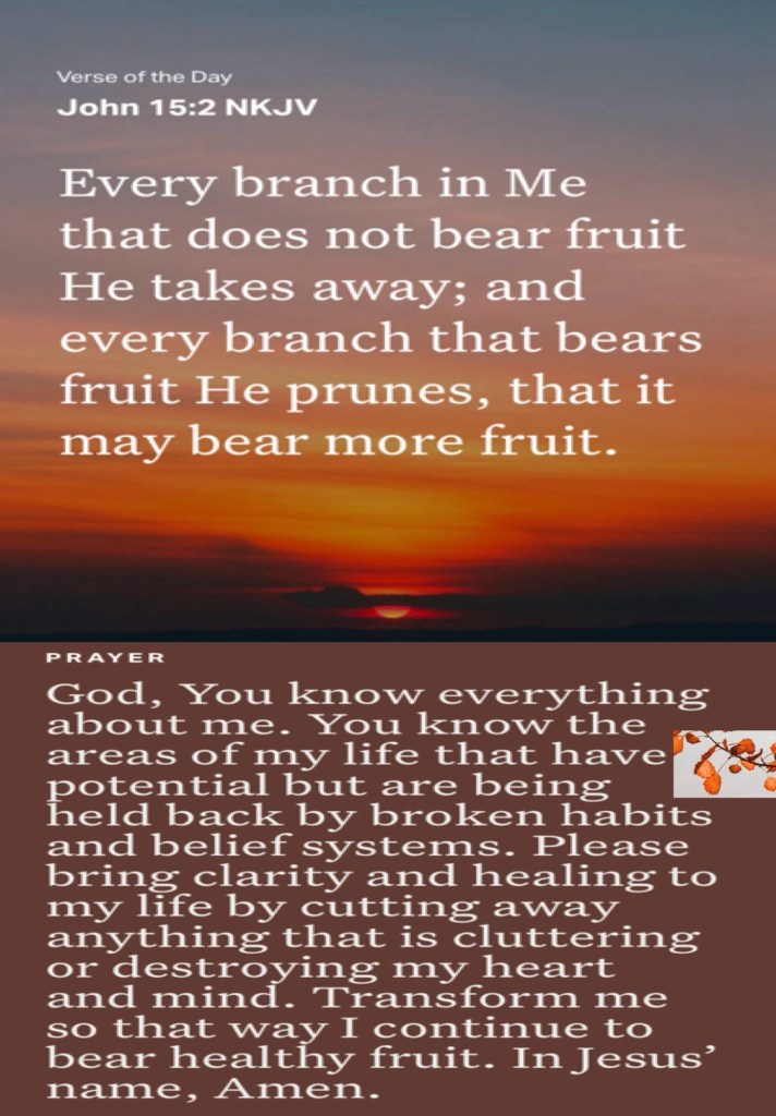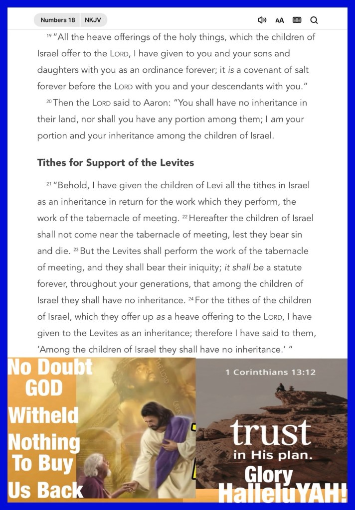 Today’s message Numbers 18, today’s verses: “For now we see in a mirror, dimly, but then face to face. Now I know in part, but then I shall know just as I also am known.” I Corinthians 13:12 “Every branch in Me that does not bear fruit He takes away; and every branch that bears fruit He prunes, that it may bear more fruit.” John 15:2