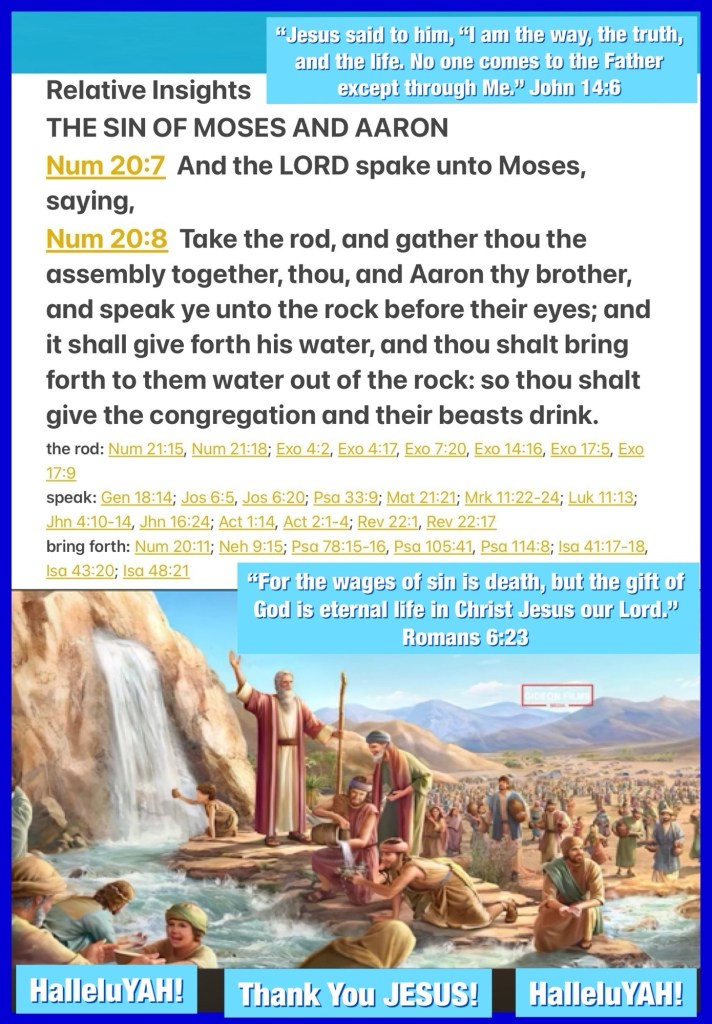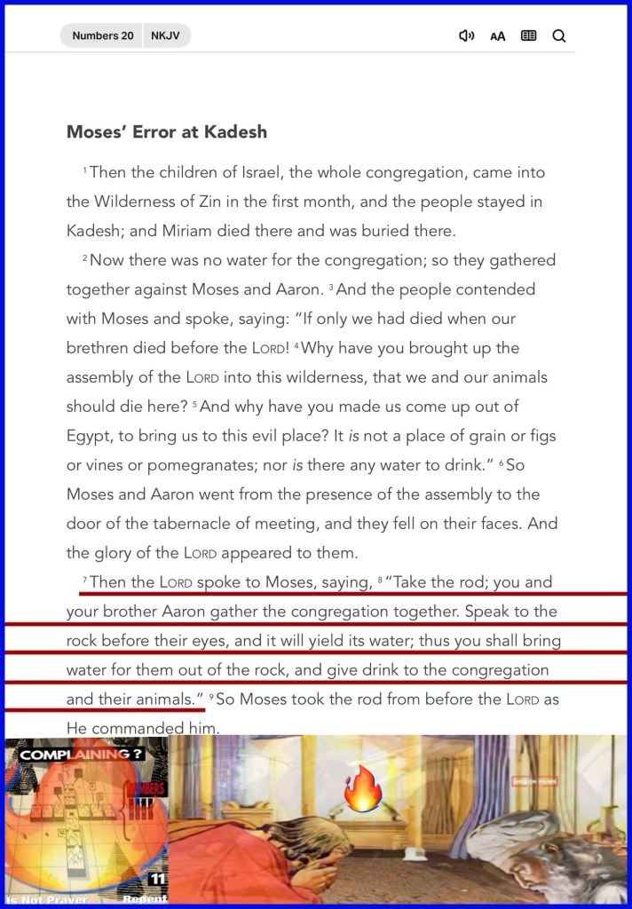 “Then the Lord spoke to Moses, saying, “Take the rod; you and your brother Aaron gather the congregation together. Speak to the rock before their eyes, and it will yield its water; thus you shall bring water for them out of the rock, and give drink to the congregation and their animals.”” Numbers 20:7-8