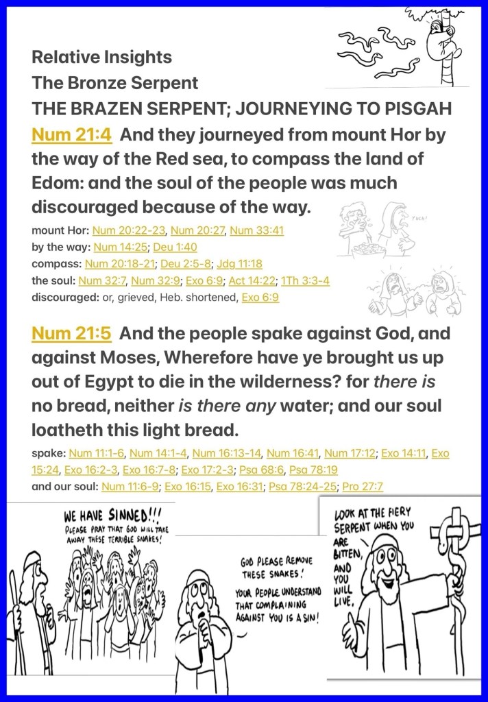 “Then they journeyed from Mount Hor by the Way of the Red Sea, to go around the land of Edom; and the soul of the people became very discouraged on the way. And the people spoke against God and against Moses: “Why have you brought us up out of Egypt to die in the wilderness? For there is no food and no water, and our soul loathes this worthless bread.”” Numbers 21:4-5