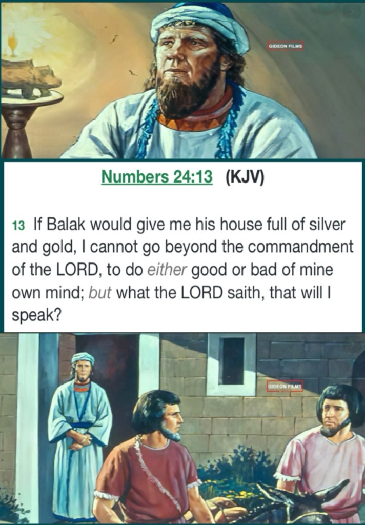 “Then Balaam answered and said to the servants of Balak, “Though Balak were to give me his house full of silver and gold, I could not go beyond the word of the Lord my God, to do less or more. Now therefore, please, you also stay here tonight, that I may know what more the Lord will say to me.”” Numbers 22:18-19