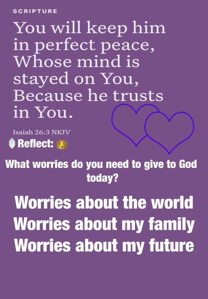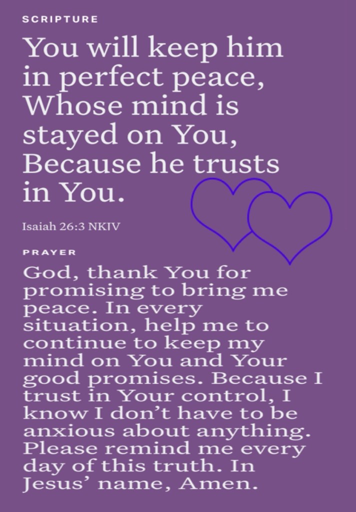 Today’s message Numbers 34 today’s verses: “If then you were raised with Christ, seek those things which are above, where Christ is, sitting at the right hand of God. Set your mind on things above, not on things on the earth.” Colossians 3:1-2 “You will keep him in perfect peace, Whose mind is stayed on You, Because he trusts in You.” Isaiah 26:3