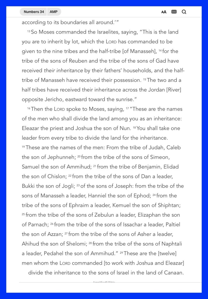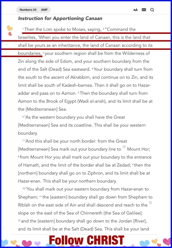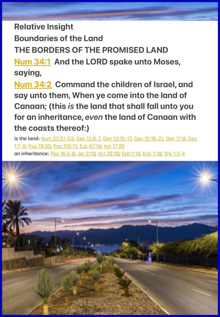 “Then the Lord spoke to Moses, saying, “Command the children of Israel, and say to them: ‘When you come into the land of Canaan, this is the land that shall fall to you as an inheritance—the land of Canaan to its boundaries.” Numbers 34:1-2