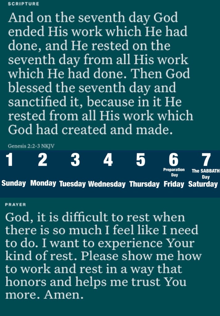 Today’s message Numbers 36, verse of the day: “And on the seventh day God ended His work which He had done, and He rested on the seventh day from all His work which He had done. Then God blessed the seventh day and sanctified it, because in it He rested from all His work which God had created and made.” Genesis 2:2-3