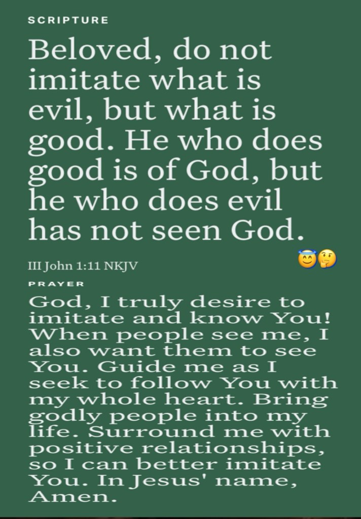 Today’s lesson Deuteronomy 3, verses of the day: “not lagging in diligence, fervent in spirit, serving the Lord;” Romans 12:11 “Beloved, do not imitate what is evil, but what is good. He who does good is of God, but he who does evil has not seen God.” III John 1:11