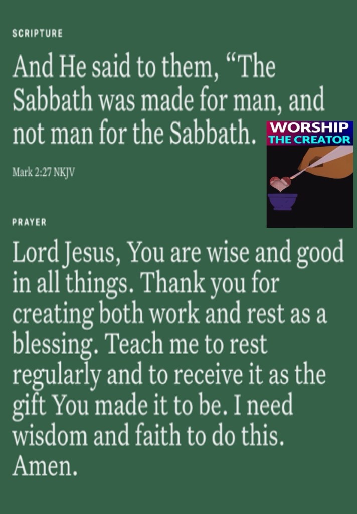 Today’s lesson Deuteronomy 7, today’s verses: “Better a handful with quietness Than both hands full, together with toil and grasping for the wind. There is one alone, without companion: He has neither son nor brother. Yet there is no end to all his labors, Nor is his eye satisfied with riches. But he never asks, “For whom do I toil and deprive myself of good?” This also is vanity and a grave misfortune.” Ecclesiastes 4:6, 8 “And He said to them,❤️ “The Sabbath was made for man, and not man for the Sabbath.” Mark 2:27