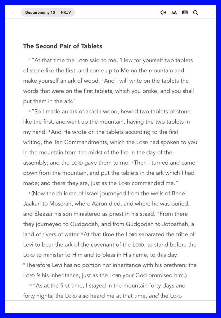 Today’s lesson Deuteronomy 10, today’s verses: “And he who had died came out bound hand and foot with graveclothes, and his face was wrapped with a cloth. Jesus said to them, “Loose him, and let him go.”” John 11:44 “Bear one another’s burdens, and so fulfill the law of Christ.” Galatians 6:2
