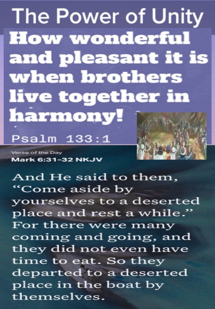 Today’s lesson Deuteronomy 11, today’s verses: “Behold, how good and how pleasant it is For brethren to dwell together in unity!” Psalms 133:1 “And He said to them, “Come aside by yourselves to a deserted place and rest a while.” For there were many coming and going, and they did not even have time to eat. So they departed to a deserted place in the boat by themselves.” Mark 6:31-32