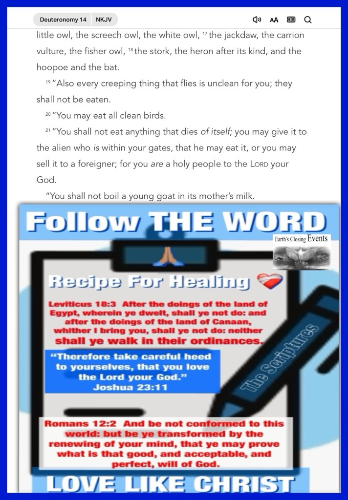 Today’s lesson Deuteronomy 14, today’s verses: “The Lord your God in your midst, The Mighty One, will save; He will rejoice over you with gladness, He will quiet you with His love, He will rejoice over you with singing.”” Zephaniah 3:17 “The father of the righteous will greatly rejoice, And he who begets a wise child will delight in him.” Proverbs 23:24