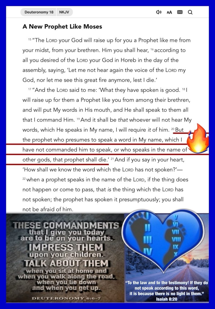 “For the Lord your God has chosen him out of all your tribes to stand to minister in the name of the Lord, him and his sons forever. You shall be blameless before the Lord your God. But the prophet who presumes to speak a word in My name, which I have not commanded him to speak, or who speaks in the name of other gods, that prophet shall die.’” Deuteronomy 18:5, 13, 20