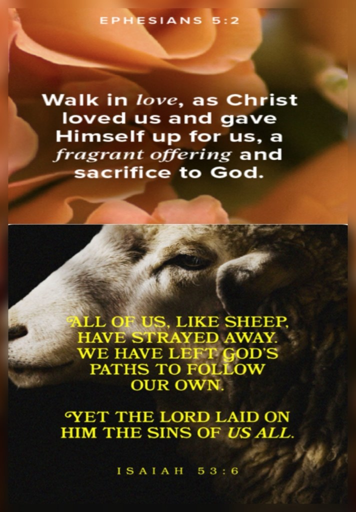 Today’s lesson Deuteronomy 23, today’s verses: “And walk in love, as Christ also has loved us and given Himself for us, an offering and a sacrifice to God for a sweet-smelling aroma.” Ephesians 5:2 “All we like sheep have gone astray; We have turned, every one, to his own way; And the Lord has laid on Him the iniquity of us all.” Isaiah 53:6