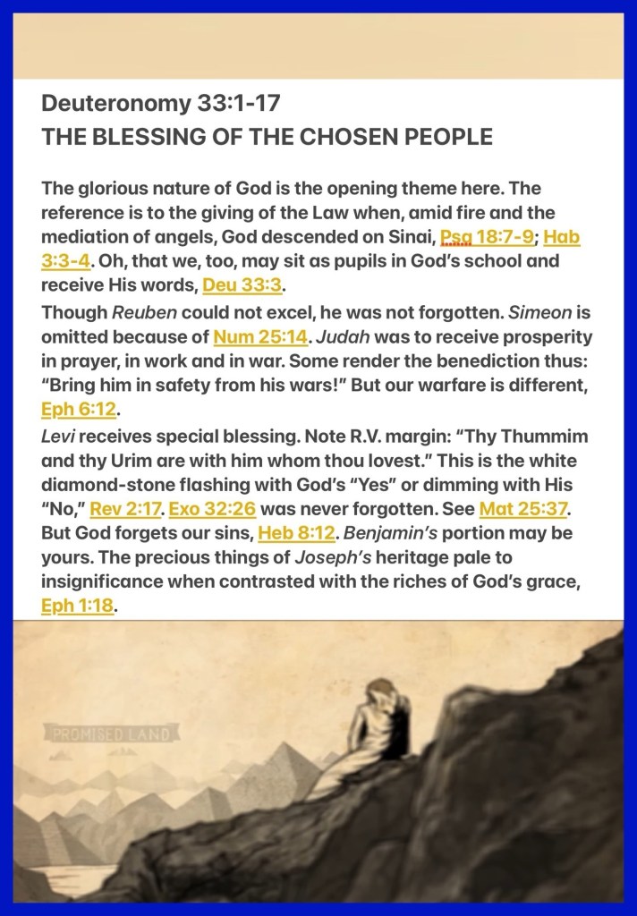 Greetings BeLoved child of THE MOST HIGH GOD: YAHUAH YIRÈH: JEHOVAH JIRÈH! Happy Preparation Day ❣️Thank you for strolling through The Scriptures (with me) to be educated: edified by our True Teacher THE RUACH HA’QUODESH: THE HOLY SPIRIT OF YAH, GLORY HALLELUYAH! By The Grace Of GOD Tomorrow we will have completed The Book of Deuteronomy which was given primarily to Review our lives through the lens of The Ten Commandments which in many ways is “the quick books” or For Dummies (No Disrespect) Condensed Milk Version Of The Bible for The Very Literal BLESSING THE CHOSEN. THE WORD Is Given To Bless: Nurture: Develop: Protect: Deliver: Provide Wisdom: Discernment: Knowledge: Agapè LOVE …All In Preparation or To Have us A Bride Prepared to Meet THE BRIDEGROOM. School is in session BeLoved, have a Great day and an Awesome Sabbath as it starts 🌅 may YAH’S Richest Blessings be upon you; Live In His LOVE: Walk Good!