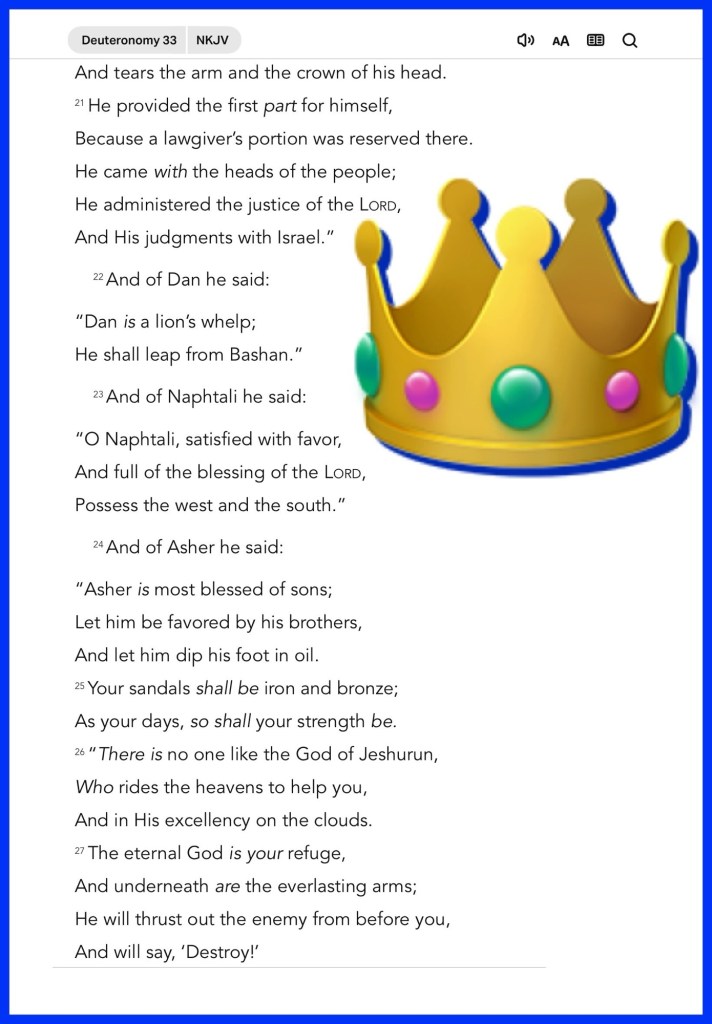 Today’s lesson Deuteronomy 33, today’s verses: “Then he said to them, “Go your way, eat the fat, drink the sweet, and send portions to those for whom nothing is prepared; for this day is holy to our Lord. Do not sorrow, for the joy of the Lord is your strength.”” Nehemiah 8:10 “For God has not given us a spirit of fear, but of power and of love and of a sound mind.” II Timothy 1:7