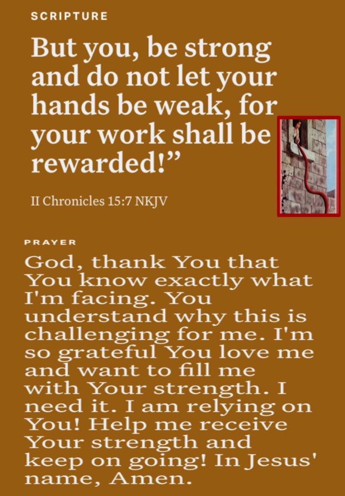Today’s lesson Joshua 2/ 24, today’s verses: “And which of you by worrying can add one cubit to his stature? If you then are not able to do the least, why are you anxious for the rest?” Luke 12:25-26 “But you, be strong and do not let your hands be weak, for your work shall be rewarded!”” II Chronicles 15:7