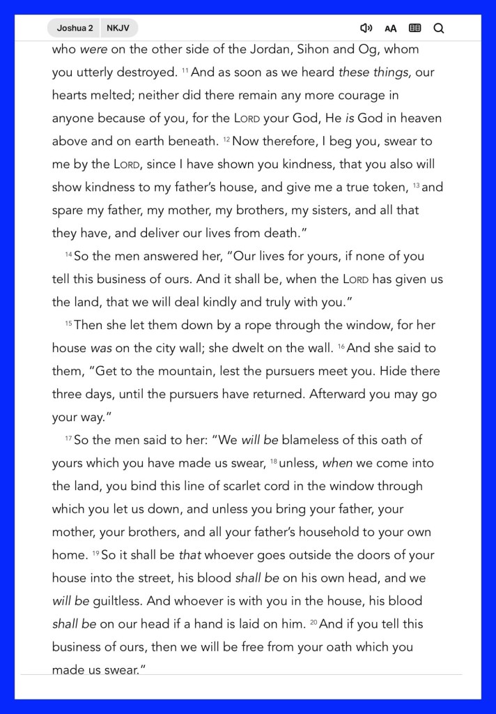 Glory To GOD From Whom All Blessings Flow! HalleluYAH! Good day BeLoved; how awesome to be part of The Family Of JESUS CHRIST: YAHUSHA HA’MASSIACH: THE SAVIOR: our SACRIFICE And Blessed REDEEMER! Today we explore the story in Joshua of Rahab “the harlot” who is beautifully woven in the Tapestry and Lineage of JESUS CHRIST; she was instrumental in Saving the lives of “the two spies” and her entire family, causing “death” to Passover The HIDDEN BLOODLINE They were CHRIST COVERED HalleluYAH! GOD IS GOOD And Always Willing To Work With And Deliver us. In a Scandalous Situation? … Don’t Be Pray and Surrender All, YHWH Is The Way when it seems like there’s No way. Please enjoy THE WORD Remember He’s your DADDY GUIDE SAVIOR 🩸 ALL PURPOSE AGAPÈ LOVING GOD; His Mission If you choose to accept it: Saving You (and your household) HalleluYAH!