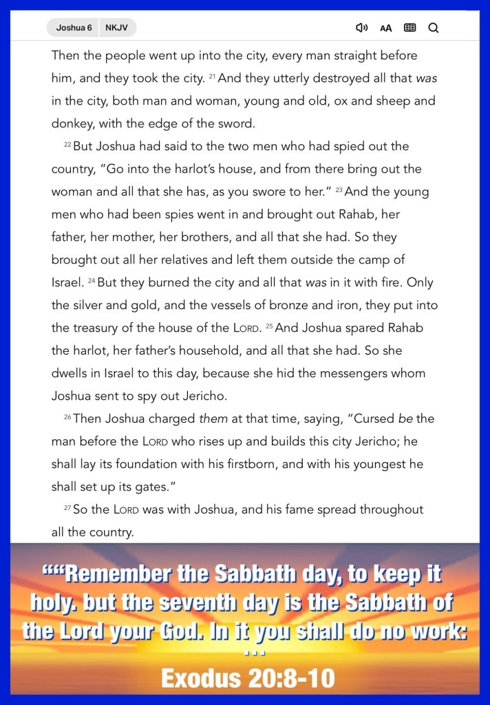 Today’s lesson Joshua 6/ 24, today’s verses: “You will keep him in perfect peace, Whose mind is stayed on You, Because he trusts in You. Trust in the Lord forever, For in YAH, the Lord, is everlasting strength.” Isaiah 26:3-4 “does not behave rudely, does not seek its own, is not provoked, thinks no evil;” I Corinthians 13:5