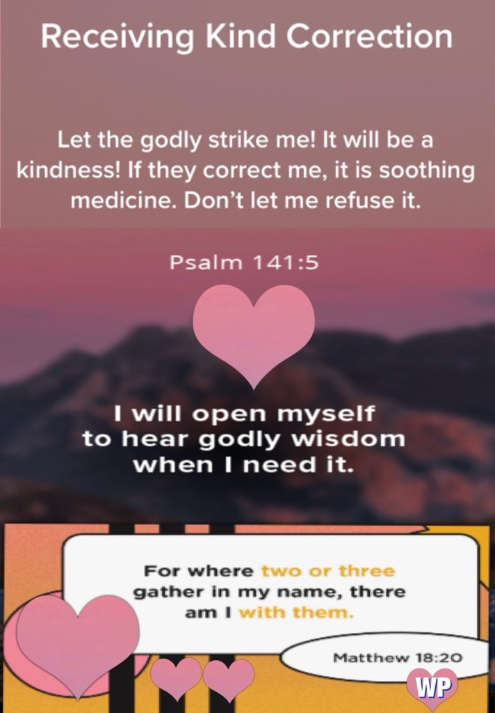 Today’s lesson Joshua 15/ 24, today’s verses: “Let the righteous strike me; It shall be a kindness. And let him rebuke me; It shall be as excellent oil; Let my head not refuse it. For still my prayer is against the deeds of the wicked.” Psalms 141:5 “For where two or three are gathered together in My name, I am there in the midst of them.”” Matthew 18:20