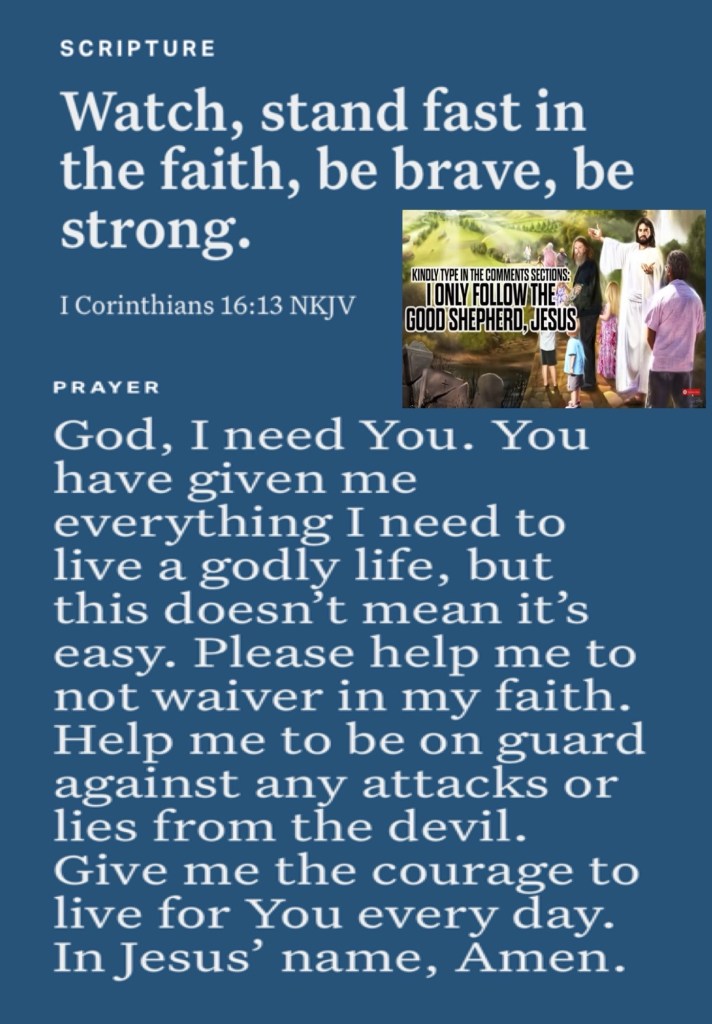 Today’s lesson Joshua 20/ 24, today’s verses: “And they continued steadfastly in the apostles’ doctrine and fellowship, in the breaking of bread, and in prayers.” Acts 2:42 “Watch, stand fast in the faith, be brave, be strong.” I Corinthians 16:13
