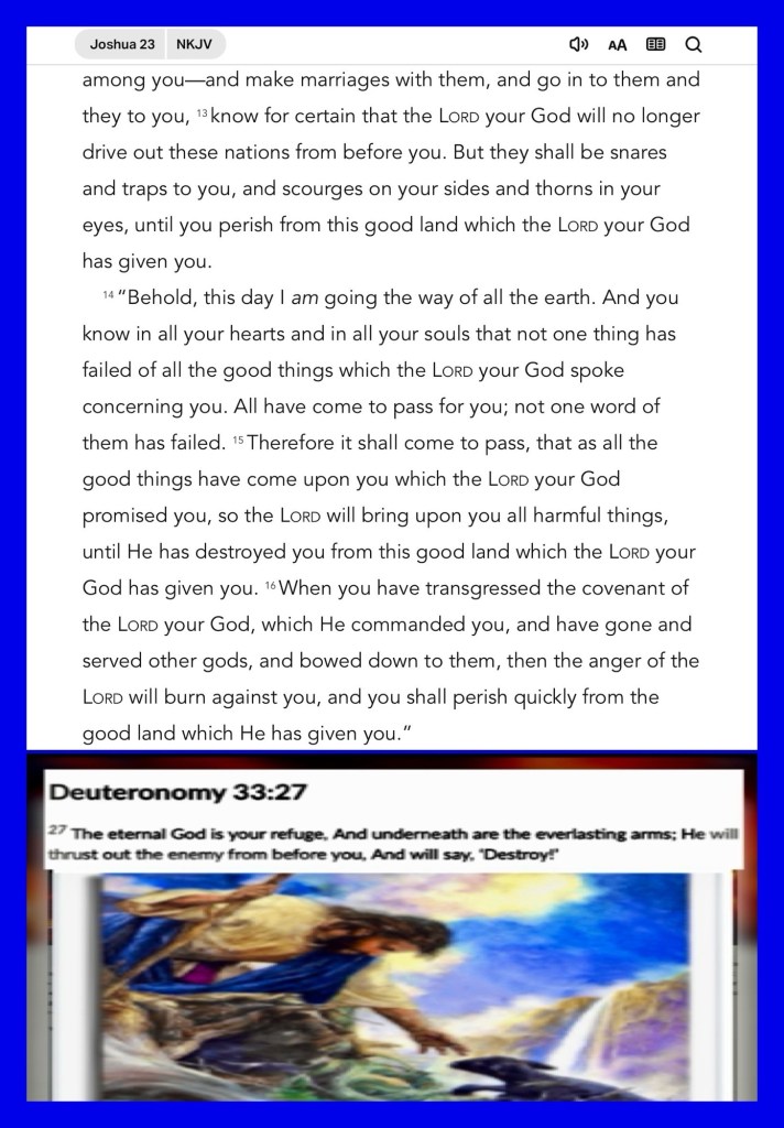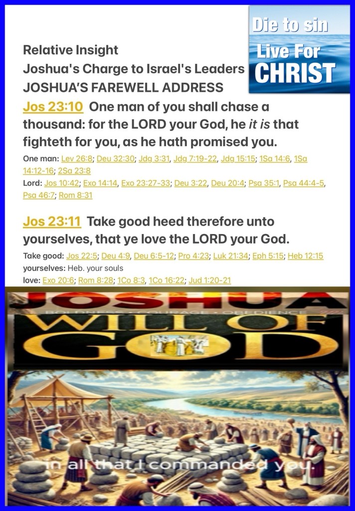 “One man of you shall chase a thousand, for the Lord your God is He who fights for you, as He promised you. Therefore take careful heed to yourselves, that you love the Lord your God.” Joshua 23:10-11