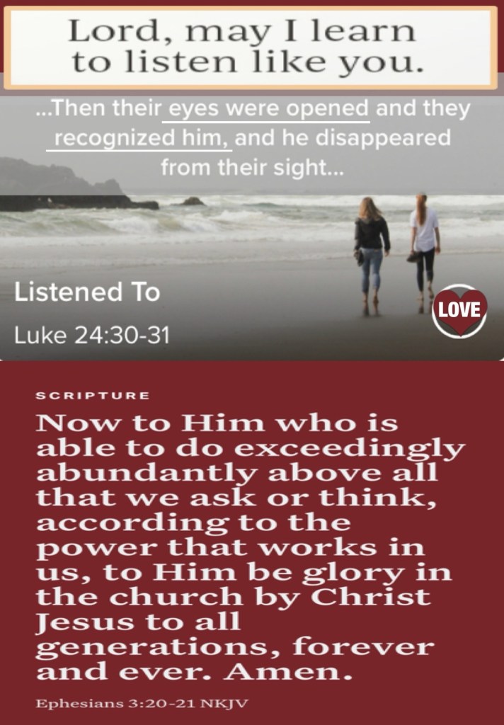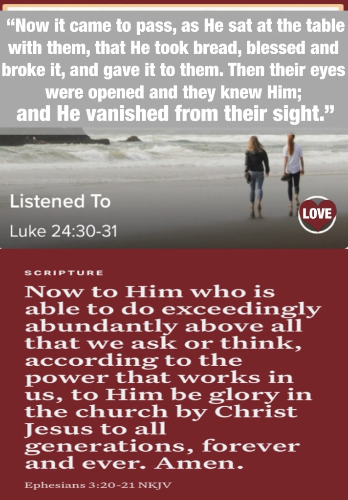 Today’s lesson Judges 1/ 21, today’s verses: “Now it came to pass, as He sat at the table with them, that He took bread, blessed and broke it, and gave it to them. Then their eyes were opened and they knew Him; and He vanished from their sight.” Luke 24:30-31 “Now to Him who is able to do exceedingly abundantly above all that we ask or think, according to the power that works in us, to Him be glory in the church by Christ Jesus to all generations, forever and ever. Amen.” Ephesians 3:20-21
