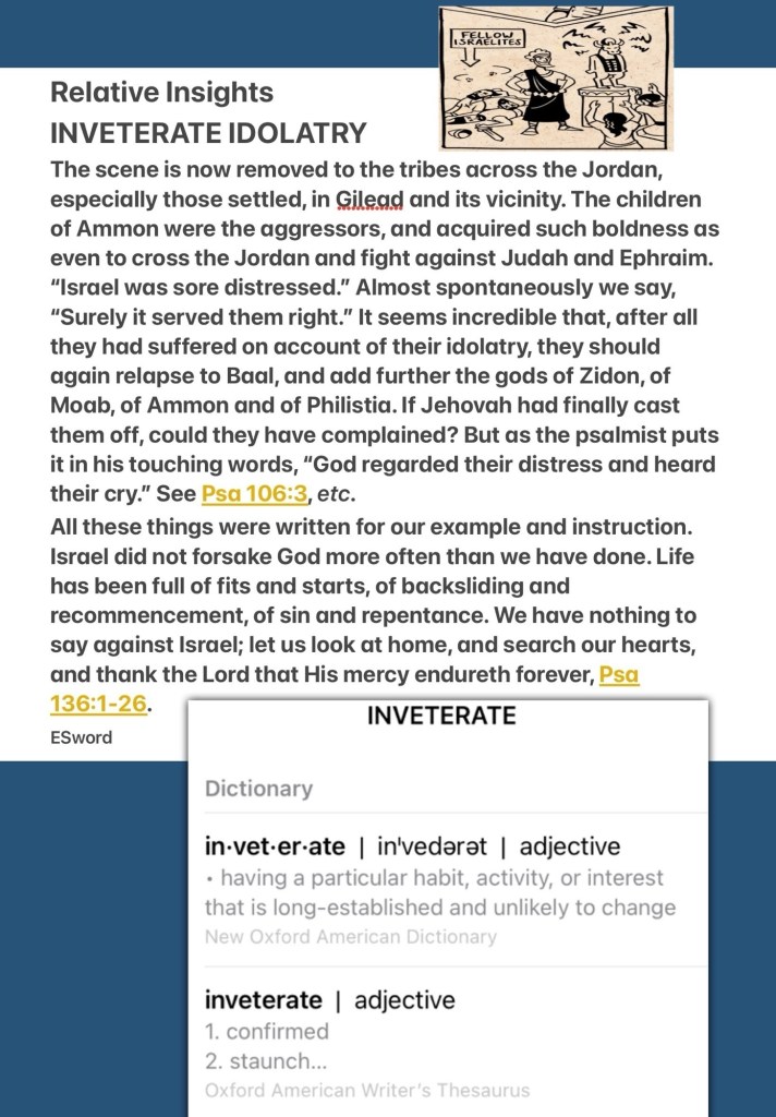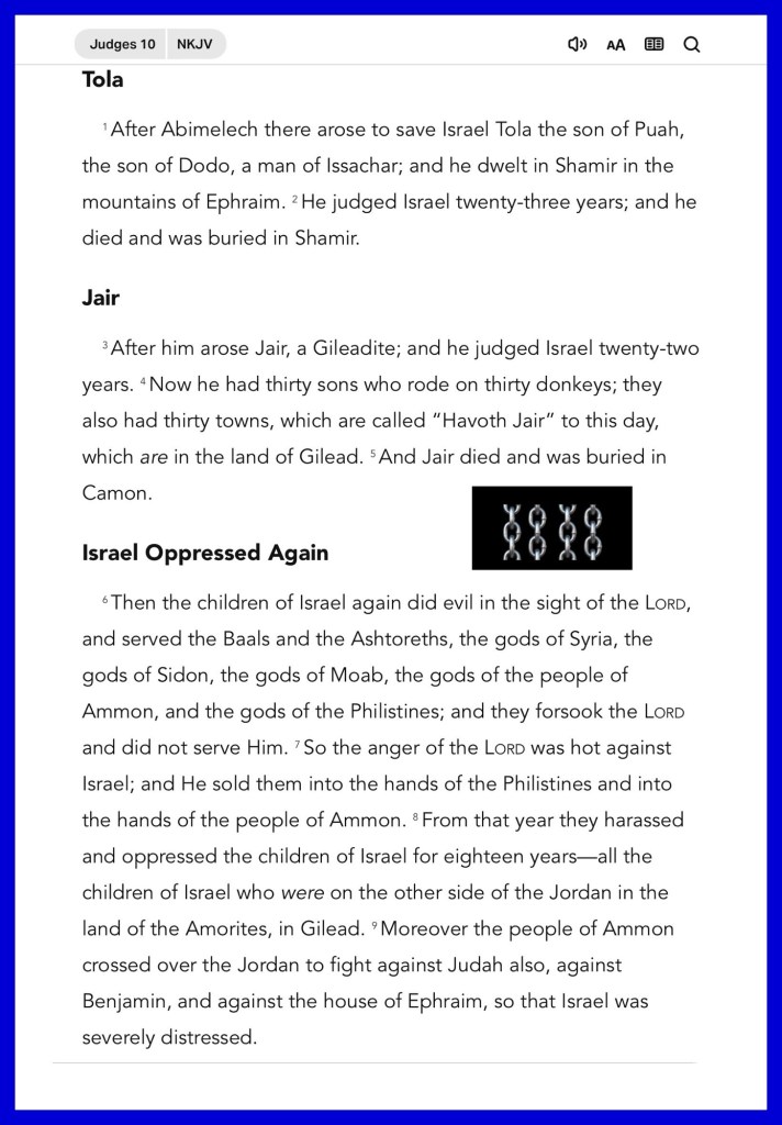 Today’s lesson Judges 10/ 21, today’s verses: “Go therefore and make disciples of all the nations, baptizing them in the name of the Father and of the Son and of the Holy Spirit,” Matthew 28:19 “for it is God who works in you both to will and to do for His good pleasure.” Philippians 2:13
