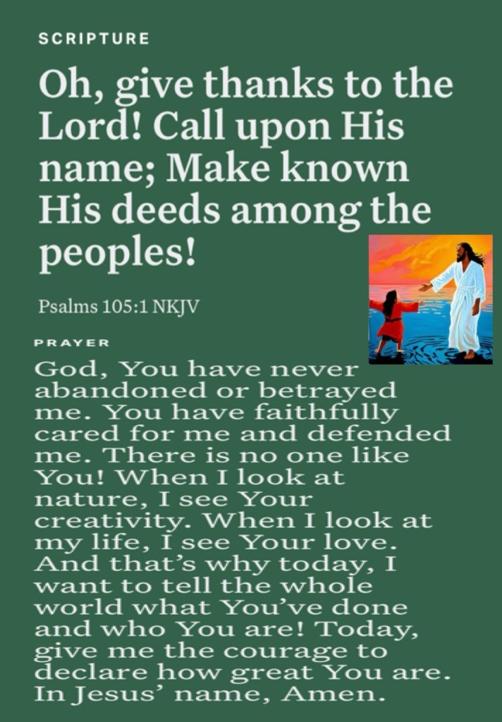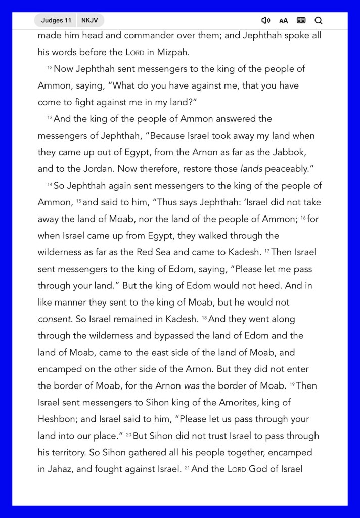 Today’s lesson Judges 11/ 21, today’s verses: “But He said to them, “Why are you fearful, O you of little faith?” Then He arose and rebuked the winds and the sea, and there was a great calm.” Matthew 8:26 “Oh, give thanks to the Lord! Call upon His name; Make known His deeds among the peoples!” Psalms 105:1
