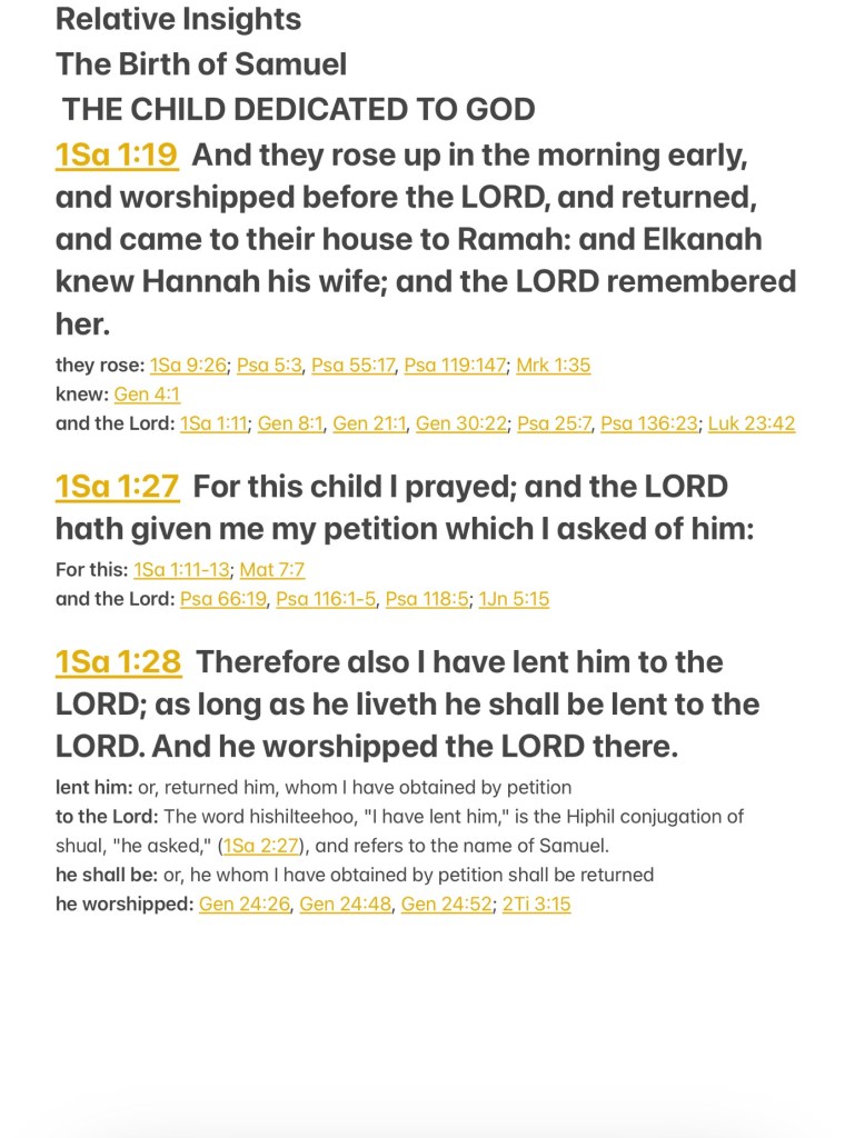 Greetings BeLoved child of THE MOST HIGH GOD. I’m so grateful that you’ve come here to reason through The Scriptures with me, if today is your first time may THE HOLY SPIRIT (THE RUACH HA’QUODESH: THE BREATH OF YAH) pour you out such a tremendous blessing that you may know for yourself, you have been with GOD. From the top of the year we have been going daily chapter by chapter book by book through THE WORD OF GOD The Bible that we may Know Him and Know His Plans for our Life here and now and hereafter. I’m a child just like you, better than no one but I’m CHRIST CONFIDENT And CONVINCED In His LOVE for you I pray you All are Blessed by this study. To truly Love is to have The Heart or Intentions of GOD towards another, to want all the best like Salvation, Healing the highest Good. Prayer can be a promise and a vow; JESUS CHRIST (YAHUSHA HA’MASSIACH) Is A Prayer Answerer and A Prayer Answered. As a Christian we must be people of our word but mostly people of GOD’S WORD: Live Love With Intention; check yourself and the spirit(s) you may be operating in, whenever possible be as Hannah towards Samuel be Loved and Properly Dedicated to CHRIST.