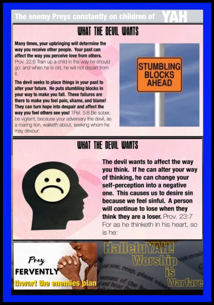 Greetings BeLoved child Of THE ETERNAL OMNISCIENT EL SHADDAI; Who Speaks And “It Is”, from Eternity past through the present and into Eternity Future He Knows the end from the beginning and has been so Good to Reveal Himself, His Love, His Struggle throughout the ages In His Love Letter to us His children, The Bible; HalleluYAH! May YHWH GOD Bless us with Wisdom, Knowledge, Discernment, Grace and Favor as we Seek Him Through THE WORD and Explore the difference between Prayer (pray (ing)) and Preyer (prey (ing)); Spiritual Warfare PSA: There Is 2 Kinds Of Prayer (Preyer) … Know How YAH Deals With Corruption Within The House Of GOD⚠️ Jeremiah 2:8 The priests said not, Where is the LORD? and they that handle the law knew me not: the pastors also transgressed against me, and the prophets prophesied by Baal, and walked after things that do not profit. 💌 This can’t be us, you are Loved beyond measure by our CREATOR GOD Please consider prayerfully and deeply THE WORD Of GOD and His Message to you. Live In His LOVE Walk Good Be Loved.