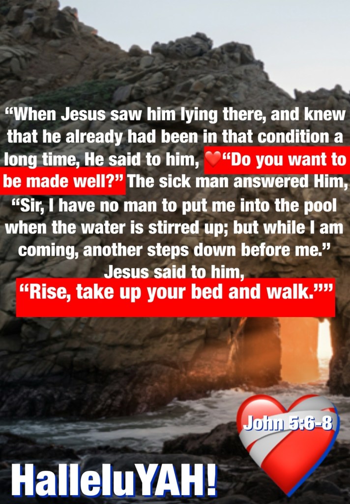 Today’s lesson 1 Samuel / 31, today’s verses: “When Jesus saw him lying there, and knew that he already had been in that condition a long time, He said to him, “Do you want to be made well?” The sick man answered Him, “Sir, I have no man to put me into the pool when the water is stirred up; but while I am coming, another steps down before me.” Jesus said to him, “Rise, take up your bed and walk.”” John 5:6-8 “For with God nothing will be impossible.”” Luke 1:37