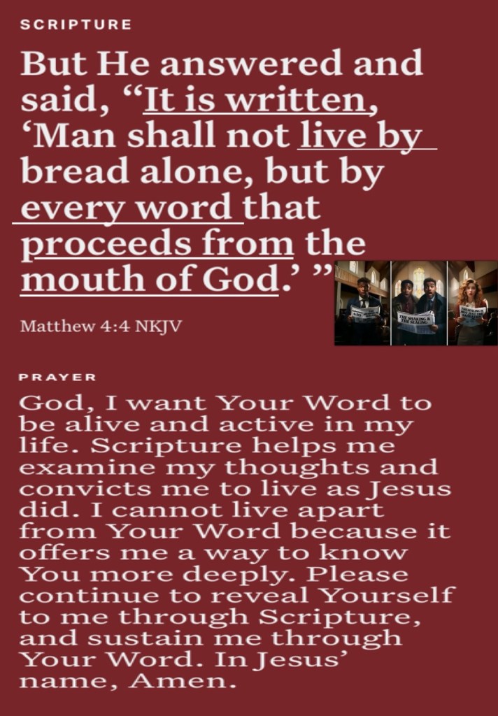Today’s lesson 1 Samuel 11/31, today’s verses: “But when you do a charitable deed, do not let your left hand know what your right hand is doing,” Matthew 6:3 “But He answered and said, “It is written, ‘Man shall not live by bread alone, but by every word that proceeds from the mouth of God.’ ”” Matthew 4:4