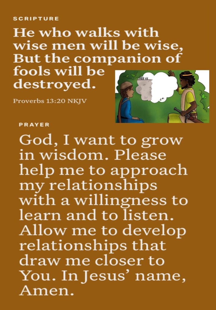 Today’s lesson 1 Samuel 14/31, today’s verses: “casting down arguments and every high thing that exalts itself against the knowledge of God, bringing every thought into captivity to the obedience of Christ,” II Corinthians 10:5 “He who walks with wise men will be wise, But the companion of fools will be destroyed.” Proverbs 13:20