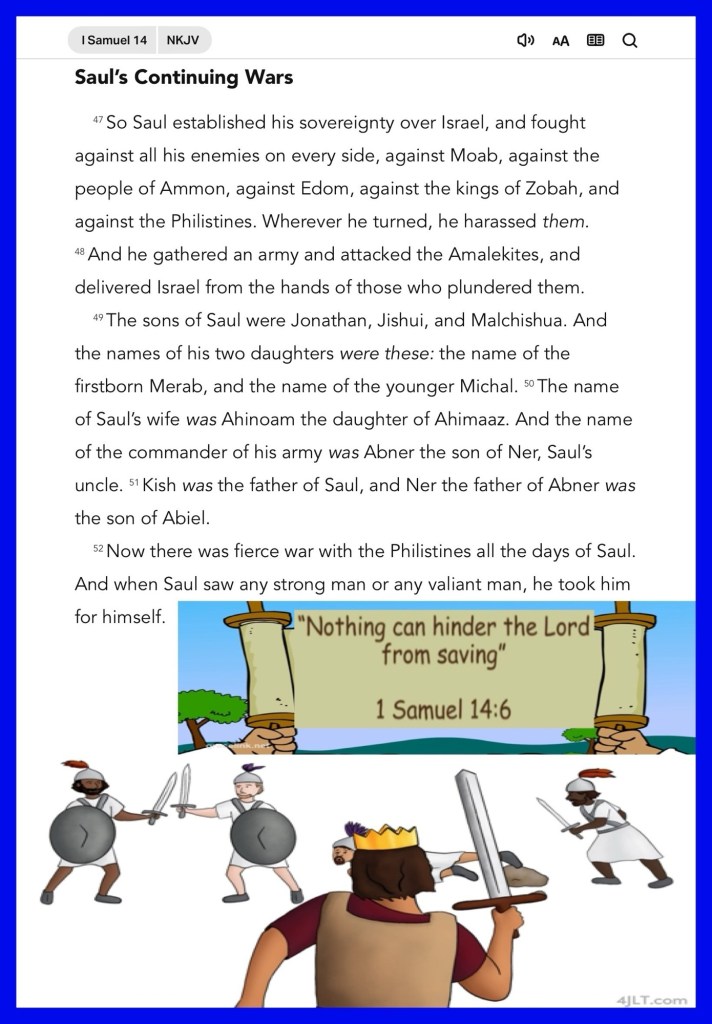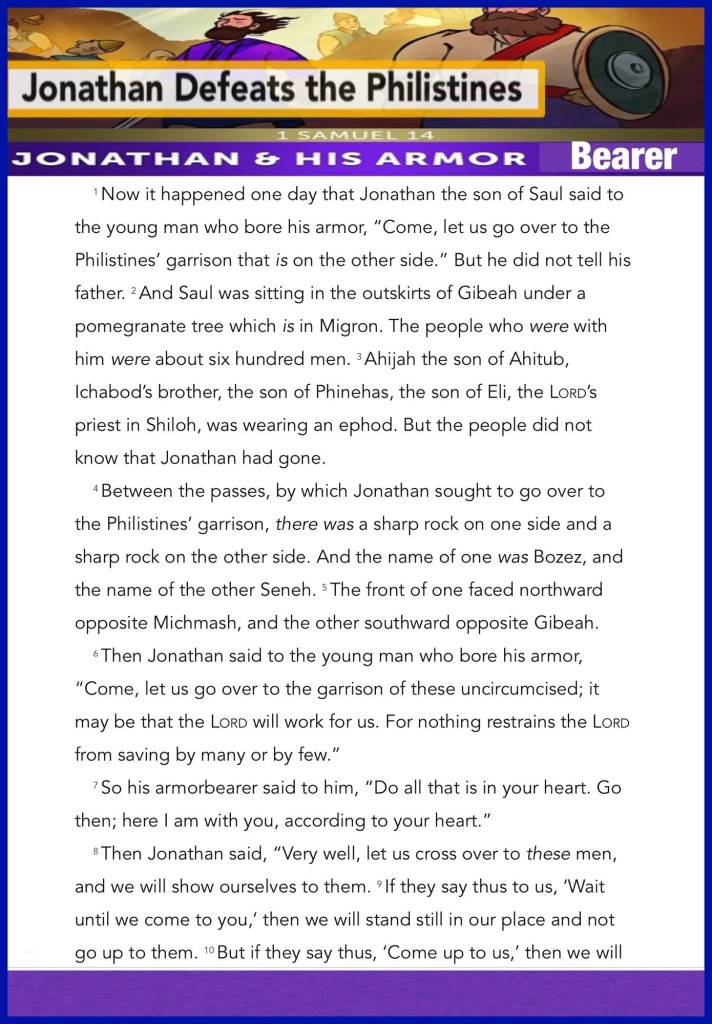 Happy Sabbath BeLoved child of THE MOST HIGH GOD JESUS CHRIST (YAHUSHA HA’MASSIACH) Thank you for stopping by to search The Scriptures to Learn more about our Heavenly FATHER as revealed through every page of Scripture, my hope is we will experience The LOVE Of YAH: “Taste And See”: Develop The CHRIST Countenance: Confidence That Will Bring us through these times of spiritual warfare much like what “Jonathan and The Armor Bearer” experienced in our passage for today; Spiritual War Fact: We Are More With CHRIST: With YAH Two can be an army and Win