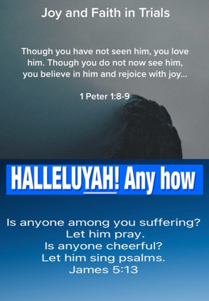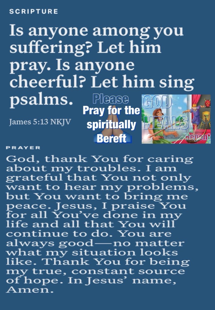 Today’s lesson 1 Samuel 19/31, today’s verses: “whom having not seen you love. Though now you do not see Him, yet believing, you rejoice with joy inexpressible and full of glory, receiving the end of your faith—the salvation of your souls.” I Peter 1:8-9 “Is anyone among you suffering? Let him pray. Is anyone cheerful? Let him sing psalms.” James 5:13
