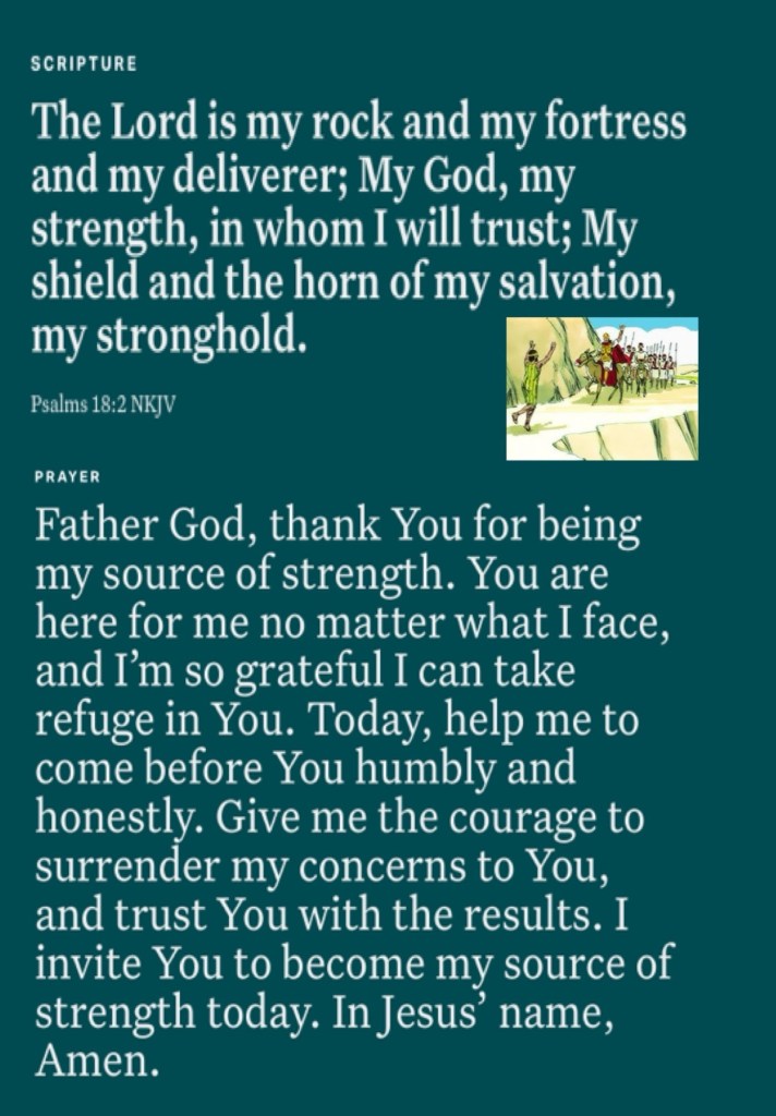 Today’s lesson 1 Samuel 21/31, today’s verses: “as sorrowful, yet always rejoicing; as poor, yet making many rich; as having nothing, and yet possessing all things.” II Corinthians 6:10 “The Lord is my rock and my fortress and my deliverer; My God, my strength, in whom I will trust; My shield and the horn of my salvation, my stronghold.” Psalms 18:2
