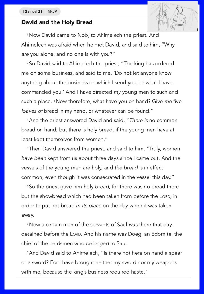 Happy Sabbath BeLoved child of THE MOST HIGH AWESOME GOD YHWH CREATOR SAVIOR DELIVERER today we’re going to walk through 1 Samuel 21: sometimes life would have it that we must live or pass through Enemy Territory or a place of major Spiritual poverty (deprivation depression oppression stress: places with high willful demonic activity: where they do not acknowledge, respect or obey THE TRUE GOD) BeLoved this is not the place for you (physically, mentally, emotionally, spiritually) Prayerfully Get Out! Spiritual Warfare: Fleeing Death: The Enemy: Temporary Insanity ALMIGHTY FATHER YAH Deliver us from a life of sin: spiritual poverty —>Temporary Insanity -> Death. Teach us Your Ways and to live according to THE WORD In JESUS (YAH) CHRIST Name I pray. Amen; I personally believe that in this case (Temporary) Insanity was A Gift 🎁 to Preserve David’s Life and to Course Correct his steps “And we know that all things work together for good to those who love God, to those who are the called according to His purpose.” Romans 8:28 “for it is God who works in you both to will and to do for His good pleasure.” Philippians 2:13 if YAH Allows it, He Can and Will Use it to bring you back to Him and Deliver you. Repent Break Up With sin🙏🏽