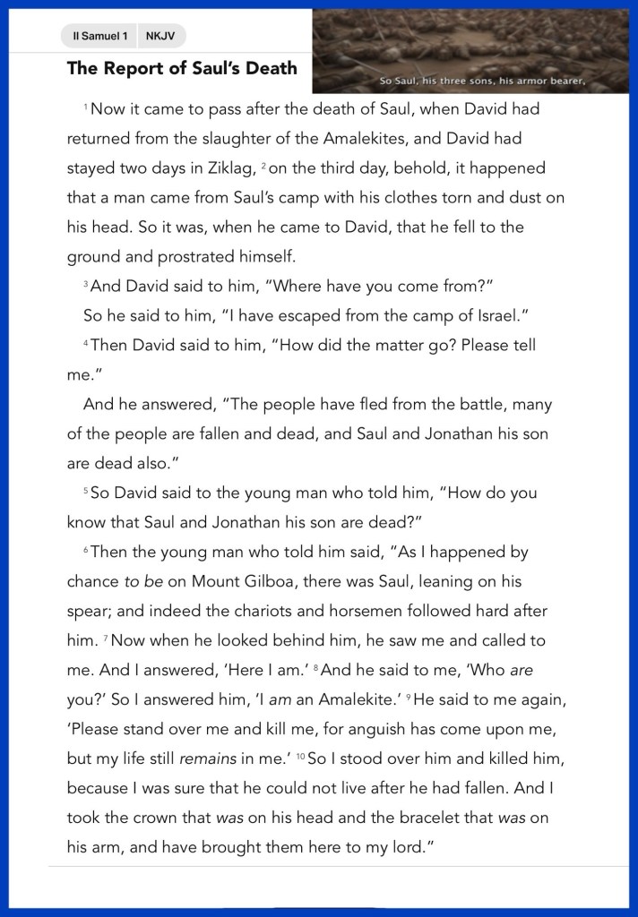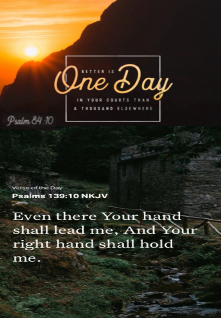 Today’s lesson 2 Samuel 1 /24, today’s verses: “For a day in Your courts is better than a thousand. I would rather be a doorkeeper in the house of my God Than dwell in the tents of wickedness.” Psalms 84:10 “Even there Your hand shall lead me, And Your right hand shall hold me.” Psalms 139:10
