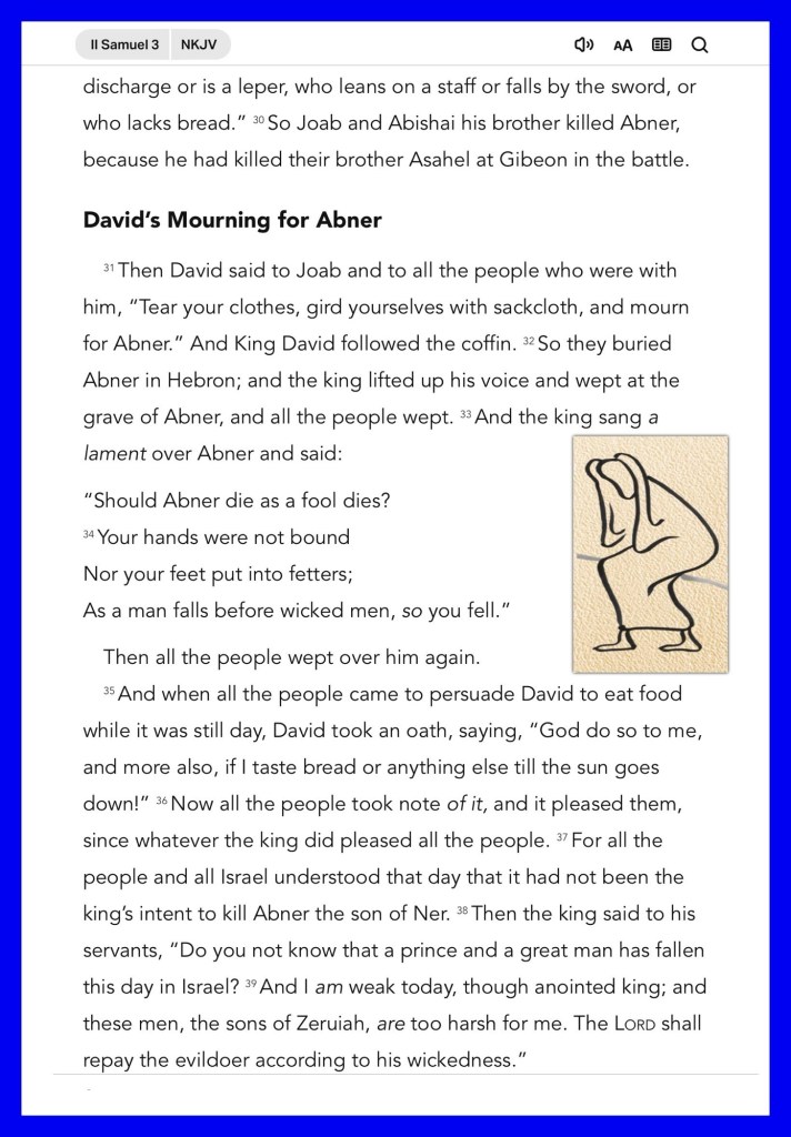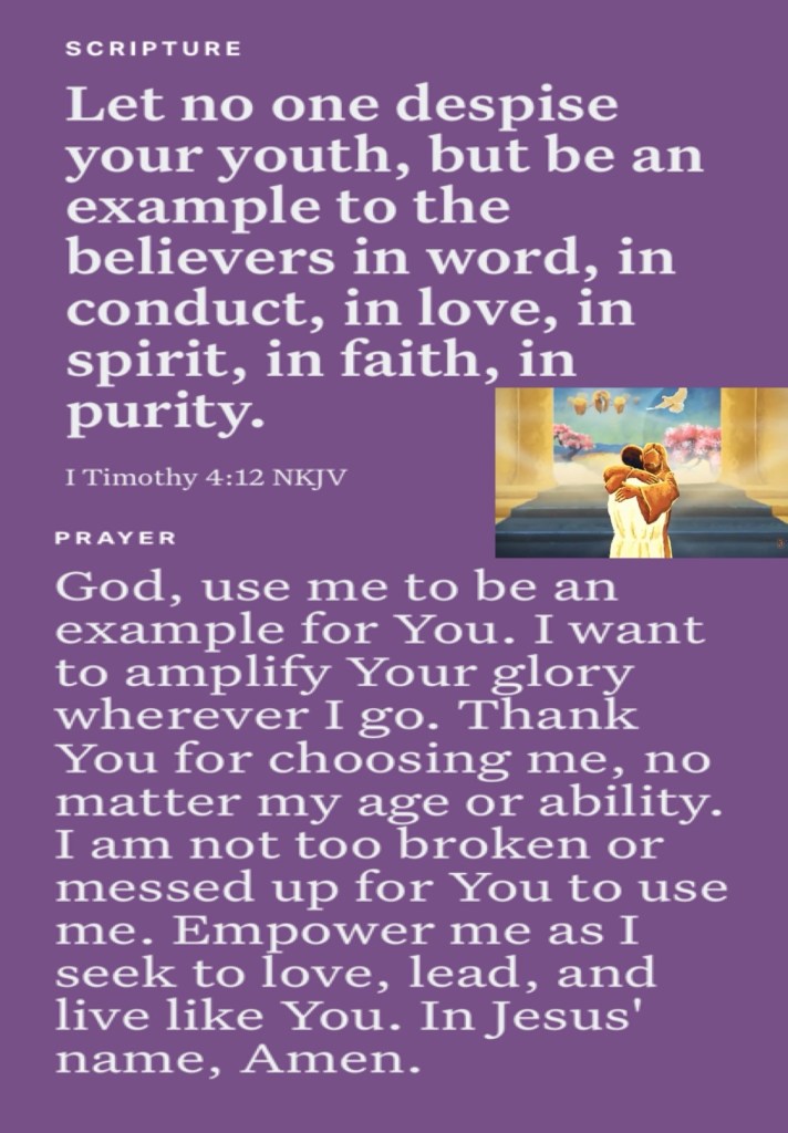 Today’s lesson 2 Samuel /24, today’s verses: “Restore to me the joy of Your salvation, And uphold me by Your generous Spirit.” Psalms 51:12 “Let no one despise your youth, but be an example to the believers in word, in conduct, in love, in spirit, in faith, in purity.” I Timothy 4:12