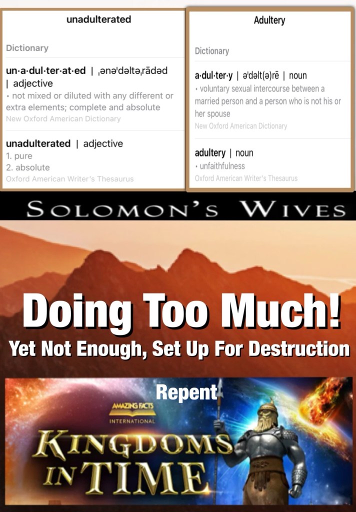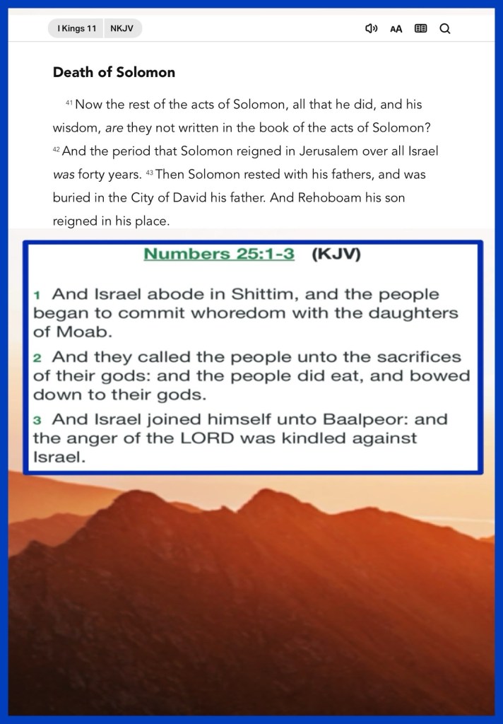 Greetings BeLoved child Of THE MOST HIGH GOD YAH ELOHIM And His SON YHWH THE LAW THE RIGHTEOUS JUDGE THE CREATOR LOVE LIFE THE GREAT I AM THE WORD Made Flesh JESUS CHRIST SAVIOR THE PROMISE GIFT THE HUSBANDMAN THE FORERUNNER THE EXAMPLE … All That And Then Some And Is The Only One Worthy Of All Worship All This Greatness we Should Walk In CHRIST CONFIDENCE yet somehow we His children are so easily distracted, misguided, deceived into Walking astray. 🔍😇 Thinking caps On BeLoved this is gonna be a wild ride today we examine king Soloman’s most blatant sin in Unadulterated Lust Unbelievable Loss ⚖️ What You Stand To Lose When You Walk In Adultery⚠️ 1 Kings 11:8 And likewise did he for all his strange wives, which burnt incense and sacrificed unto their gods.⚠️ BeLoved Spiritual Warfare Is Real and for this reason I pray we take Seriously THE WORD Of GOD, Read: Heed: Know Him for ourselves so we have A WORD in due season (Do season also) Repent GOD LOVES you Never Forget What He Gave So you could Live both now and For Eternity. It’s YHWH or No way, Walk Good Be Loved.