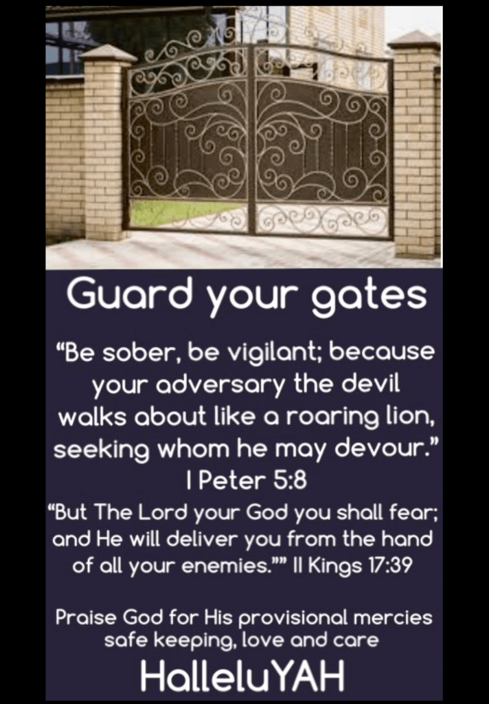 Greetings BeLoved child of THE MOST HIGH GOD YAH ELOHIM THE SAVIOR: YAHUSHA HA’MASSIACH: JESUS CHRIST I pray that you are well and know for sure how precious you are to The Family Of YAH; 🔸 “and if children, then heirs—heirs of God and joint heirs with Christ, if indeed we suffer with Him, that we may also be glorified together.” Romans 8:17. You are Loved beyond measure so much so that Heaven Poured From Its Vast Riches In JESUS CHRIST The Price of our Redemption HalleluYAH! Thank You JESUS! In the meantime we have some Gatekeeping Brethren to Sound The Alarm and or simply Keep Watch over every matter pertaining to the treasuries of the House of GOD; BeLoved this includes you please note YAH Knows our numbers: the full breakdown concerning the divisions in our present day family situations, we can PUSH Through to Victory when we Guard our gates with CHRIST